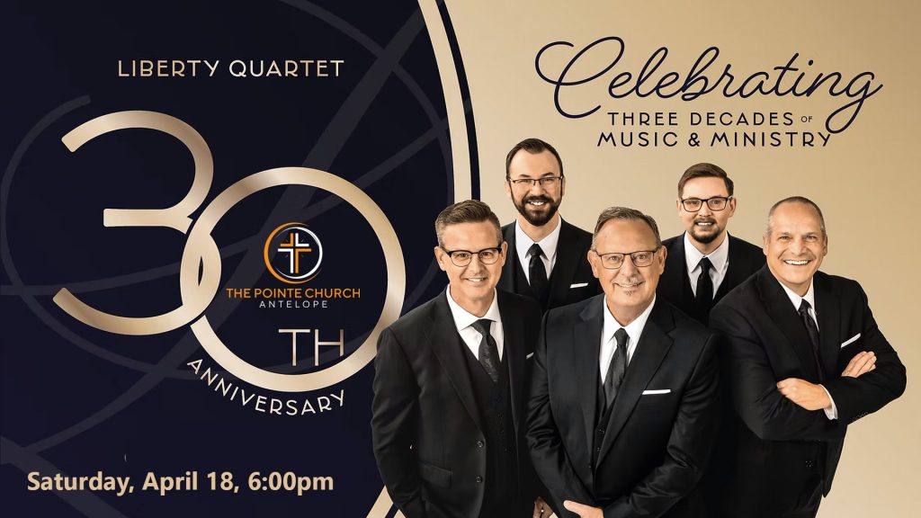 Saturday Night, April 18, 6:00pm. Liberty is a Gospel group based in the West with a full-time concert schedule. The members of Liberty are Royce Mitchell, bass; Paul W. Ellis, lead; Will Arasmith, baritone; Doran Ritchey, piano/baritone; and Peyton Olive, tenor. Liberty travels many miles each year, ministering in performances for church services, nursing homes, prisons, and other ministries.